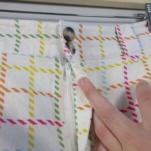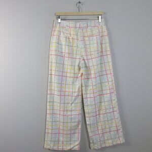 Modcloth Women's Wide Leg Pants 8 Ivory Linen Viscose Rainbow Plaid Preppy 306