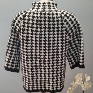 Model France houndstooth sweater. Black and white. Size 2XL Measures 22 inches pit to pit. Length is 24 inches. Very stretchy material. Small thread flaw on front. NWT