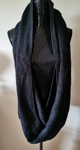 Modena Black Infinity Scarf. Condition is very good with one run in it. Has been washed. Measurements are in the photo section.Feel free to contact me with any questions. Thank you for looking.