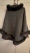 Elevate your wardrobe with this chic charcoal poncho, featuring plush faux fur trim for a touch of luxury. Ideal for versatile styling.