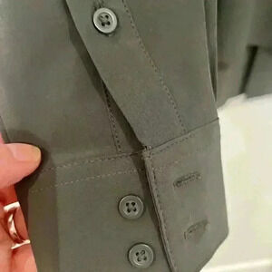*Worn Once* The Esteem Sustainable Relaxed Dress Shirt is made with stretch woven fabric that includes recycled fibers. This sustainably produced shirt offers 4-way stretch for limitless movement and excellent shape recovery. It features an ultra-breathable high-low hem cut, anti-wrinkle, anti-odor properties, and a spill-resistant finish. Additionally, the unique heat-infused performance label on the back neckline ensures anti-irritation for ultimate comfort. The colour is Dark Forest. *This shirt was only worn once because I am hot ALL THE TIME and can only wear sleeveless tops. 🥵