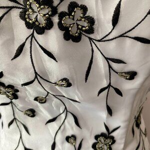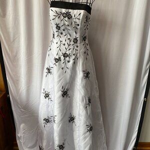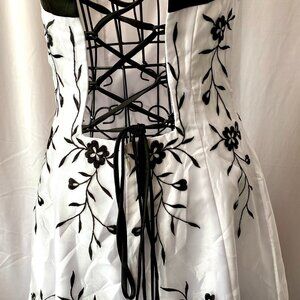 Turn heads in this brand-new-with-tags white-and-black ball gown — a true showstopper with just the right touch of vintage edge.