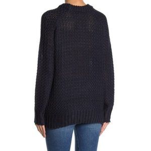 A crew neck sweater featuring an airy stitch and long raglan sleeves makes this a winter season staple.