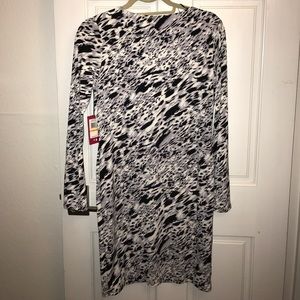 95% polyester 5% spandex body with 100% polyester lining. New with tag. Great to wear for a night out for dinner or for work. It's cute to wear it all year round.
