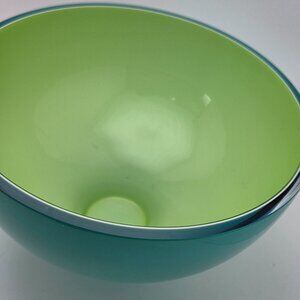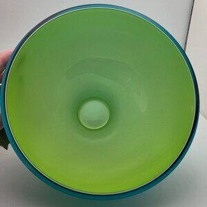 Modern Glass Bowl Teal Blue Exterior Casted Green Interior Footed 5x8 Inches