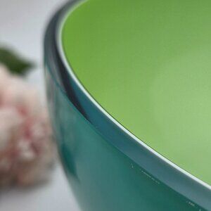 This contemporary glass bowl is a perfect blend of style and functionality. The bowl features a stunning teal blue exterior with a casted green interior, providing a vibrant touch to any table setting. Its round shape and size, measuring 5x8 inches, make it an ideal choice for both everyday use and special occasions.