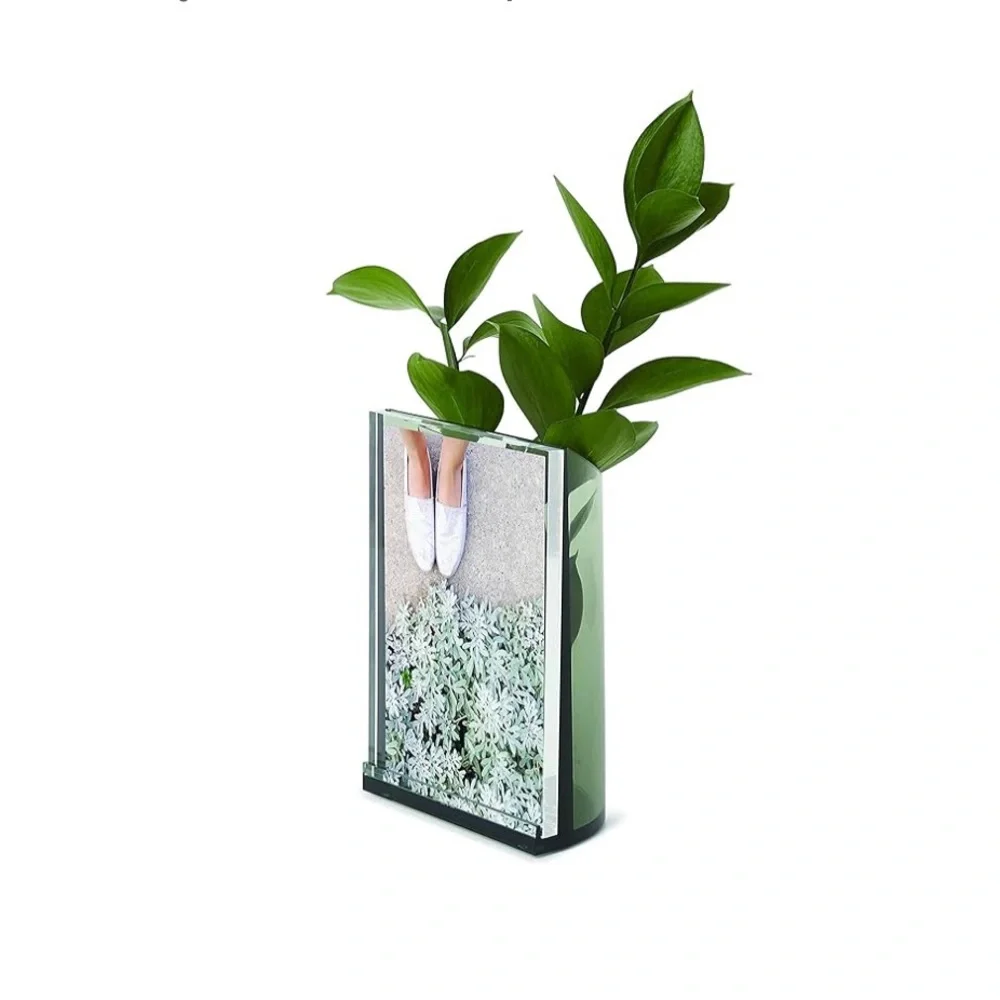 Umbra Acrylic Optic Photo Holder - Transparent 4x6 Inch Table Top Photo Frame with Storage, Holds 4x6 Photos, Plants, 3D Objects and More, Spruce