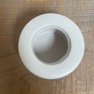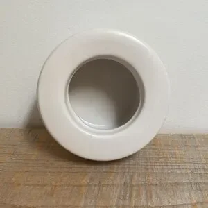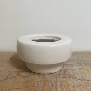 Cute little modern 6” planter/pot. It doesn’t have drainage. It’s a creamy warm white. 3.5” tall.
