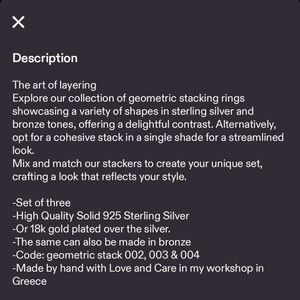 Elevate your style with this set of modern silver geometric rings. Perfect for adding a bold statement to any outfit. Size 6. Set of 3 rings. Solid sterling silver. No flaws or wear to note. Comes in velvet pouch with silver polishing cloth.