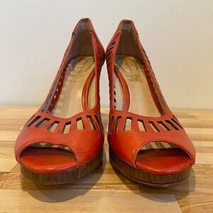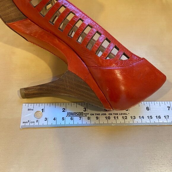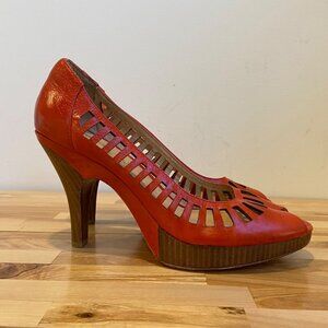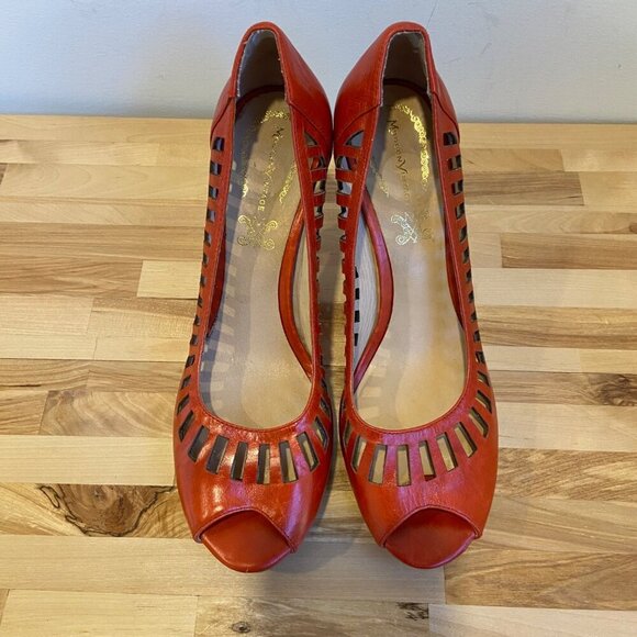 Modern Vintage Malory cherry pumps Orange Leather Cutout Peep Toe Heels size 38