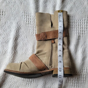 Modern Vintage Slouched Over the Ankle Zip up Belted Stacked Heel Boots