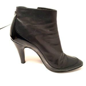 Black soft leather and patent booties with a side zipper Sz 7 or 37 EU