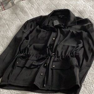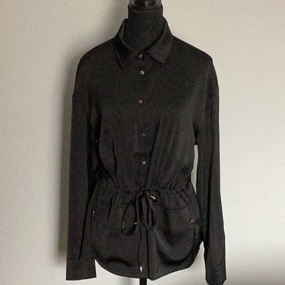 Modern Works Black Button-Up Top with Drawstring Waist