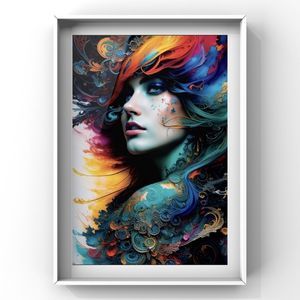 As a modern home decor wall art, this print serves as a statement piece that can transform the ambiance of any room. It adds a touch of contemporary flair, while the girl portrait adds a personal and relatable touch. The abstract print introduces an element of visual excitement and energy, making it a focal point in the space.