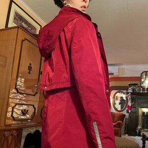 Tags: Nautica raincoat, lightweight raincoat, rain parka, drawstring waist, cinched waist raincoat, red raincoat, zip-up raincoat, hooded duster, red lightweight coat, water-resistant coat, vintage Nautica jacket, 90s raincoat, 1990s lightweight raincoat, hooded raincoat, sporty raincoat, casual raincoat, breathable raincoat, travel raincoat, packable raincoat, outdoor raincoat, bright red raincoat, Nautica hooded jacket, adjustable raincoat, functional rainwear, stylish raincoat, red trench coat, unisex raincoat, vintage hooded parka, classic rain jacket, durable raincoat, Nautica outerwear, rainy day jacket, windbreaker raincoat, retro raincoat, rain-resistant parka