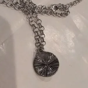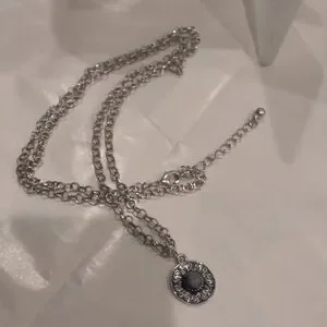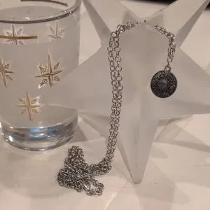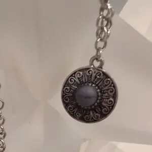 This elegant silver pendant necklace is perfect for any occasion. The intricate design adds a touch of sophistication to your outfit.