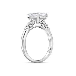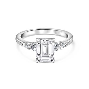 If you’re looking for a ring with effortless charm that still feels refreshingly modern, you’ll fall head over heels for The Caitlyn. This unique engagement ring is designed with a 1.5 carat conflict-free emerald cut center stone accompanied by 2 sets of dainty round cut side stones that sit perfectly on a sleek, silver solitaire band. The undeniable elegance of the emerald cut pairs seamlessly with its brilliant round cut side stones, adding a gorgeous touch of shimmer without overshadowing the star of the show.