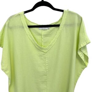 Mododoc Linen Blend Top Size L Pit to Pit 28” Shoulder to Hem: Front 26” Back30” -V Neck -Frayed Hems ^J073