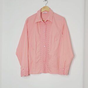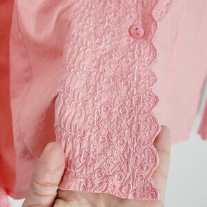 Moffi International Vintag Pink Cotton Blend Embroidered Button-Up Shirt Size XL