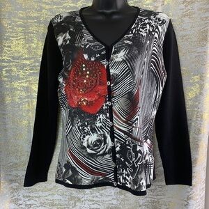 - Gorgeous rose print sequinned button up cardigan,beautifully styled can be wear for evening occasions,mid weighted and comfy