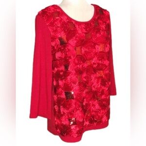 Make a statement in this pretty red sequinned rosette top. 3/4 sleeves, 5% Spandex, so has some stretch to it.