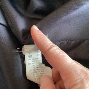 Coat made of a mohair angora wool blend. Quality fabric. See pictured tag for exact composition.