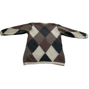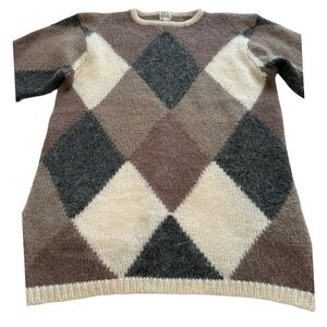 Mohair Blend Vintage Diamond Pattern Sweater Y2K Oversized Sweater - Size Large