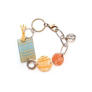 Multiple mix of different Mohair colored interlayers encapsulated in eco-resin, very lightweight and comfortable to wear, so cute. Fits a 7.5 - 9 " wrist adjustable