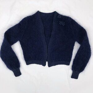 Mohair Sweater Shaggy Cropped Navy Blue Handknit Bolero Cardigan