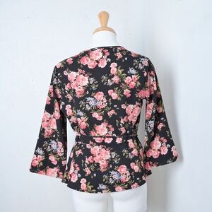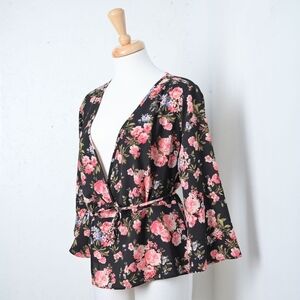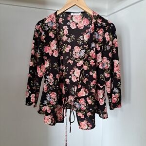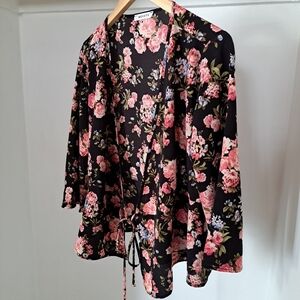 Moiety | Floral blouse cardigan style women's layering shirt . it's a blouse material but is a cardigan style garment.