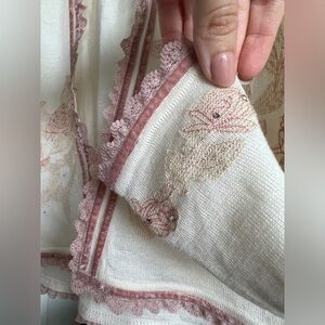 Moiselle Womens Pink White Embroidered Floral Wool Cottagecore Cardigan 2