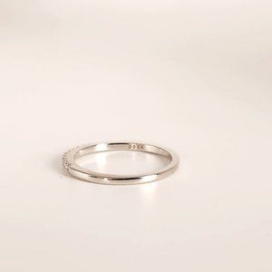 This exquisite ring features 0.15 ct moissanite diamonds that sparkle brilliantly and are sure to complement any engagement ring. This stunning band is crafted from 925 silver, making it durable and long-lasting.