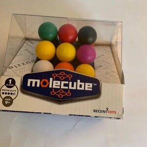 Once you get your hands on the Molecube, you'll never want to put it down. We crafted a smooth spinning device that glides with your wrists, and whose spherical pieces really give you the feeling of ultimate dexterity! Then there's the puzzle itself. Can you get all 9 colors on each side? Careful: only a puzzler who understands cubes at the atomic level stands a chance! Never opened was gift but my kids weren't interested. Slight indentation on one side from storage see last photo.