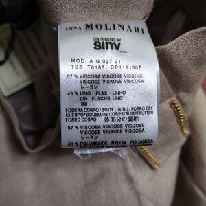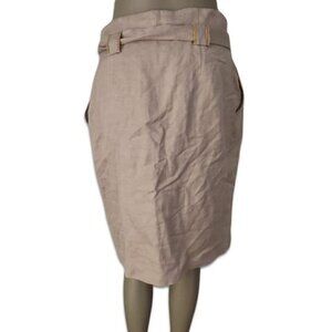 Molinari Belted Pencil Skirt Flax Linen Midi Tan Women's Size 42 US 6 NWT
