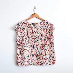 Molly Bracken Bamboo-Print Short-Sleeve Blouse Women's L NWOT