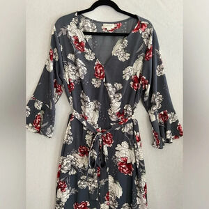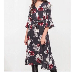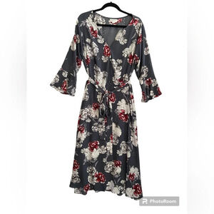 Molly Bracken Floral Faux Wrap Belted Midi Dress Sz 18