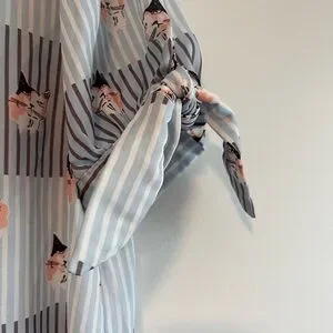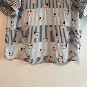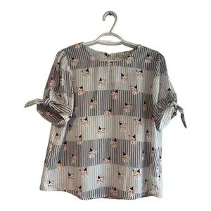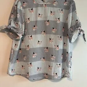 From the Lili Sidonio Collection. Cute yet stylish unique cat print sweet blouse. Easy-to-wear short sleeve blouse with stripe and cat print.
