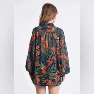 Molly Bracken Loose Printed Shirt for Women in Navy Size Small