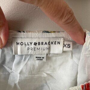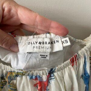 Molly Bracken Off The Shoulder Birds Print Ruffles Cropped Top White Blue XS : Used and in good used condition