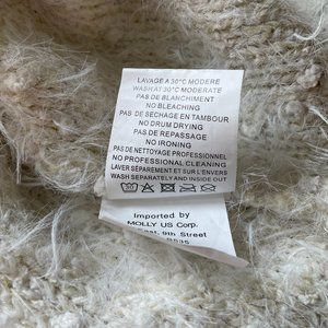 Fuzzy white drop-sleeve sweater by Molly Bracken. Knit is textured with small interwoven shimmer. Excellent condition.