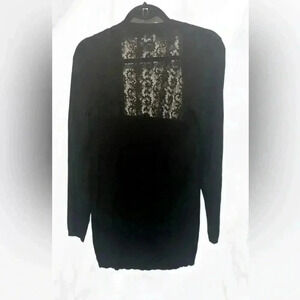 Molly Bracken lightweight open front mid length black lace trim cardigan M