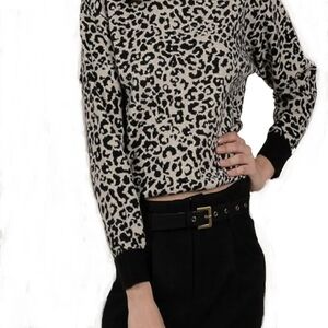 Style meets comfort and cozy in the Molly Bracken Animal Print sweater. This sweater features a neutral animal print pattern, drop shoulder long sleeves with fitted cuffs, and black trim on the crew neck, hem, and cuffs.