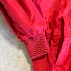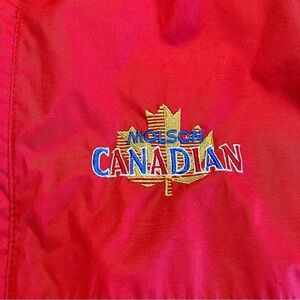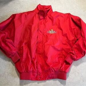 Vibrant red jacket with embroidered Molson Canadians logo. Features a high collar and elastic cuffs.