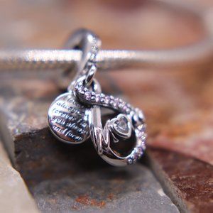 Mom Infinity Double Dangle Charm with "I Love You Always and Forever" Message - NWOT.