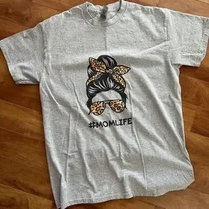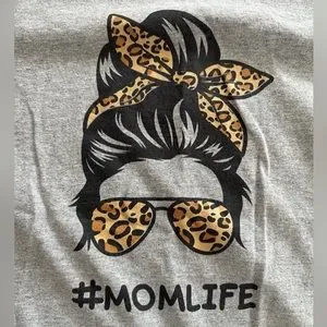 NWOT grey mom life t-shirt with cute leopard print design. Received duplicate as gifts.