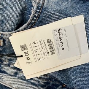 Never work, blue wash mom jeans. Excellent quality with minimal rips.