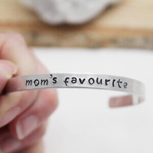 Mom's Favourite - Hand Stamped Anodized Aluminum Bangle - Adjustable