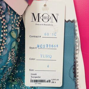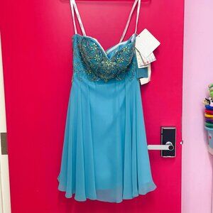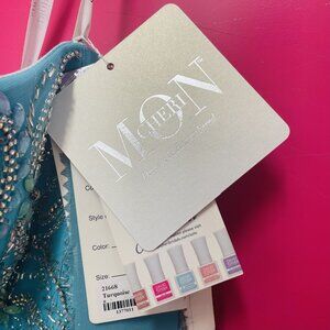 Mon Cheri - Beaded Turquoise Strapless Dress