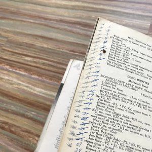 Vintage Monarch Hand-Knit Baby Book #111 from 1955 has a large variety of patterns to knit for babies: full outfit sets, bonnets of all kinds, mittens, booties, socks & more. 63 pages, 8" x 11". This vintage pattern book was well-used and has heavy wear: tattered cover with heavy creasing, some tears/rips, separated from binding. No missing pages. Some notations written on pages.