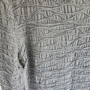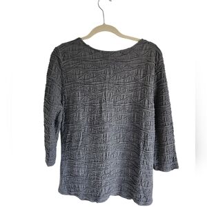 Scoop neck tshirt with 3/4 Length Sleeves with a crinkle abstract 3d knit textured fabric. Unique. Rare.